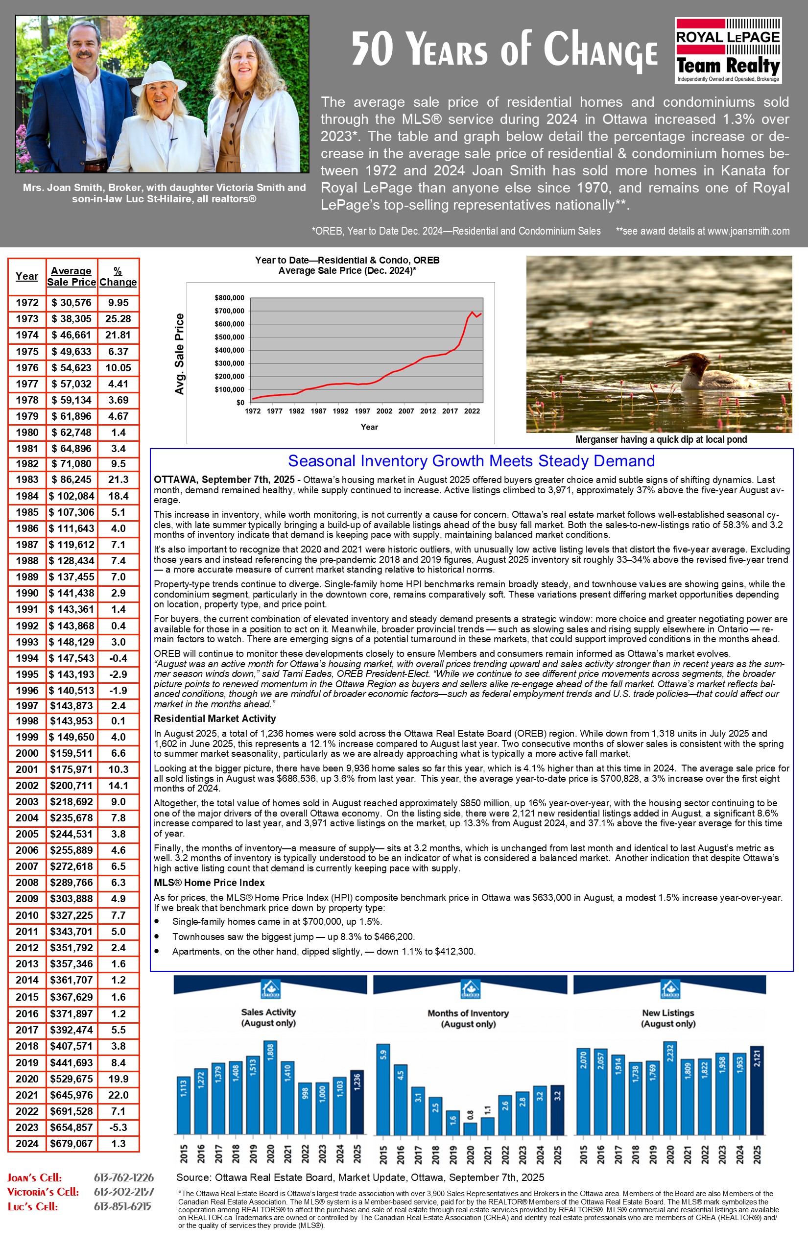 09 Sep Ottawa Market Update August 2025 – 50 Years of Change