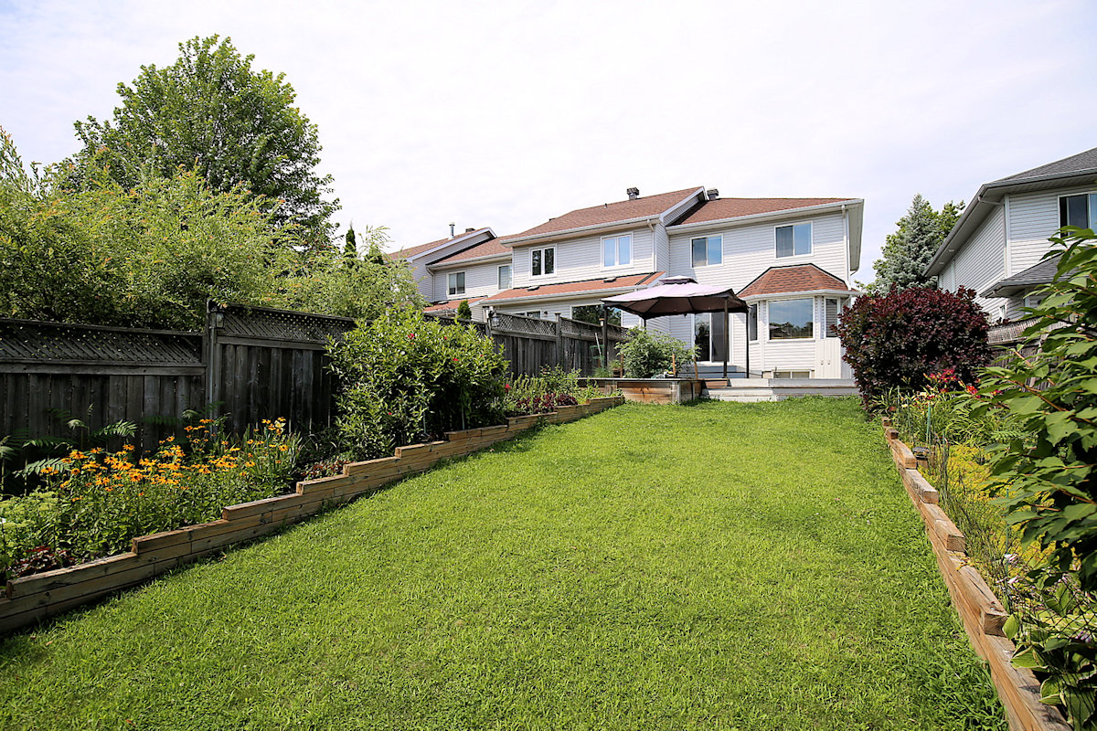 119 Blackdome Crescent – This three bedroom, four bath townhome, with fabulous gardens, in Kanata Lakes has a great location and a private yard to enjoy. Great for gardeners. It is within walking distance to many parks, shopping, transit & schools, and in the catchment for Earl of March, All Saints Intermediate & High Schools, WEJ, Stephen Leacock, & George Vanier. Great space in immaculate condition with chef’s kitchen, open dining & living rooms (with gas fireplace) and wonderful finished lower level with additional 2 piece bath and laundry. Welcoming front porch, tiled foyer and double closet. Handy powder room and inside entry to garage. 2 car parking in driveway.