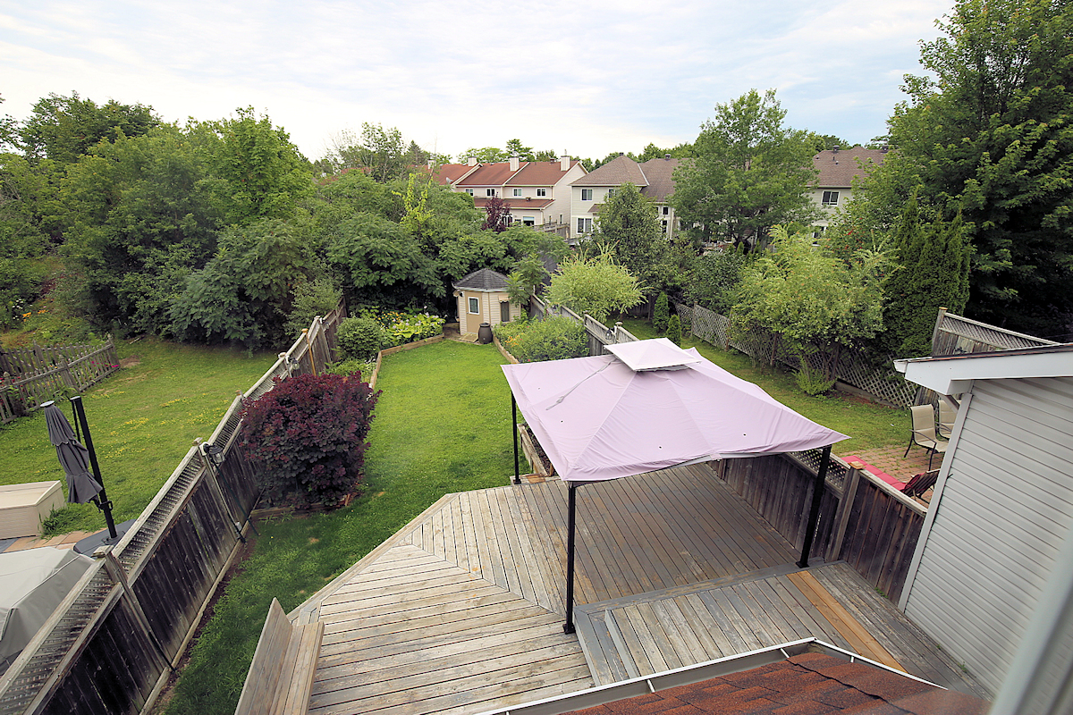Spacious living room open to the dining room with big bay window & great backyard views. Chef’s kitchen has many cabinets and all appliances are included (including wine fridge). Patio door to huge 2 level deck and private backyard with garden shed great for avid gardener. On the second level, the large primary bedroom features updated neutral light paint colour (not shown in the photos), beautiful windows, overhead light, spacious walk-in closet and a four piece ensuite with a tub/shower combination and vanity with sink. The expansive secondary bedrooms include overhead lights, large windows and double closets. The family bath has a good-sized vanity and tub/shower combination with tiled surround.